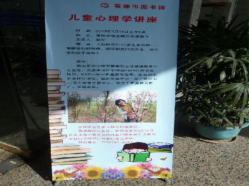 4月14日上午9时许,常德市图书馆主楼二楼报告厅举办了题为《如何与7mdash;14岁儿童沟通》的儿童心理学公益讲座。现场气氛十分热烈,五十个座位的报告厅近八十位读者和家长朋友济济一堂。此次讲座从专业的角度出发,使前来参加的听众受益非浅。